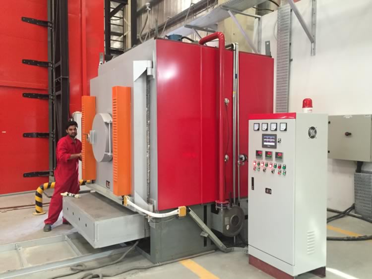 4、臺車上安裝有耐壓抗高溫的鑄鋼爐底板,以承載工件之用。多塊爐底板采用子母扣式結(jié)構(gòu),**防止工件加熱后產(chǎn)生的氧化皮通過爐底板間的縫隙落到加熱元件上,而造成加熱元件損壞。