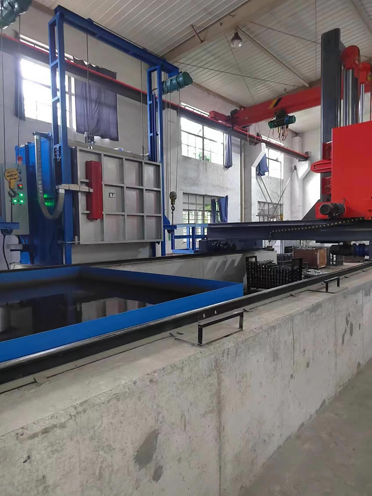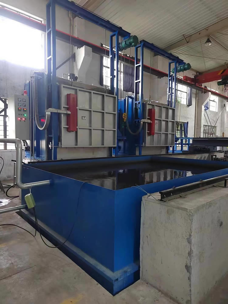 3、出爐淬火:按動(dòng)出爐按鈕——中轉(zhuǎn)車移動(dòng)到淬火爐爐口——爐門開啟——中轉(zhuǎn)車把工件叉出爐膛——中轉(zhuǎn)車后退并下降進(jìn)入淬火介質(zhì)——中轉(zhuǎn)車帶動(dòng)工件在水中左右擺動(dòng)(次數(shù)可調(diào))——中轉(zhuǎn)車上升瀝水——淬火工作完成