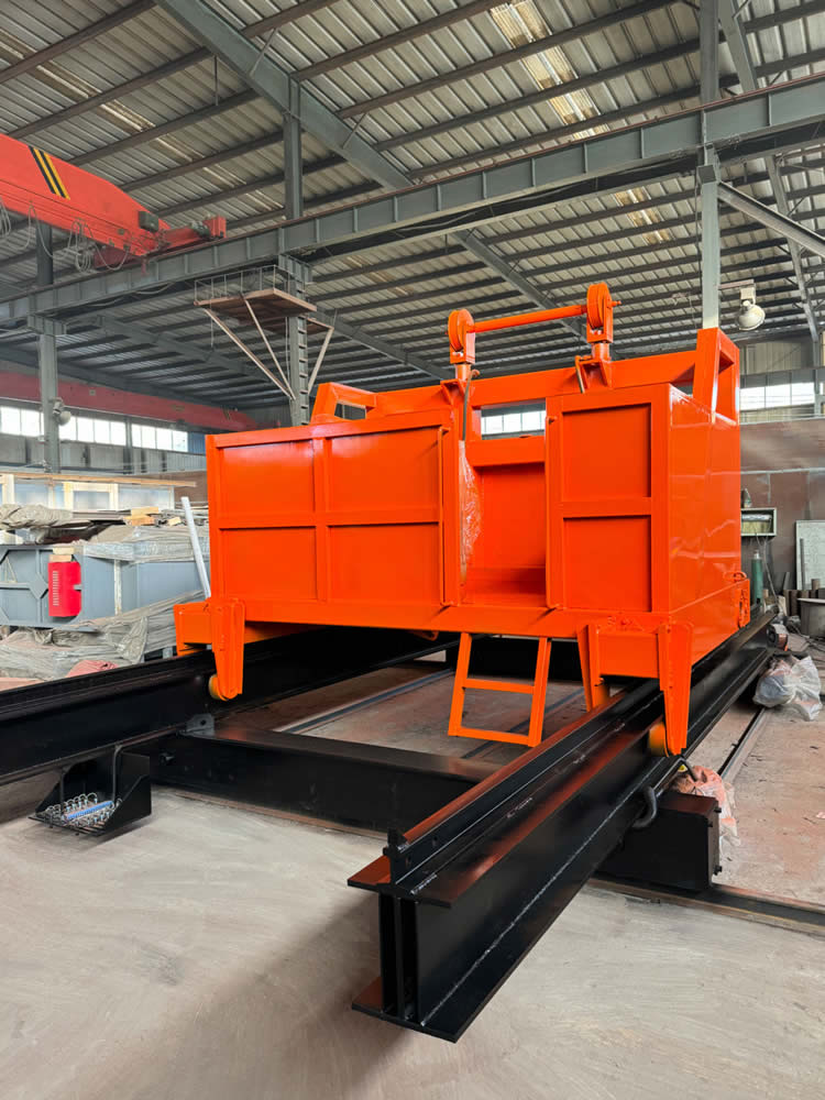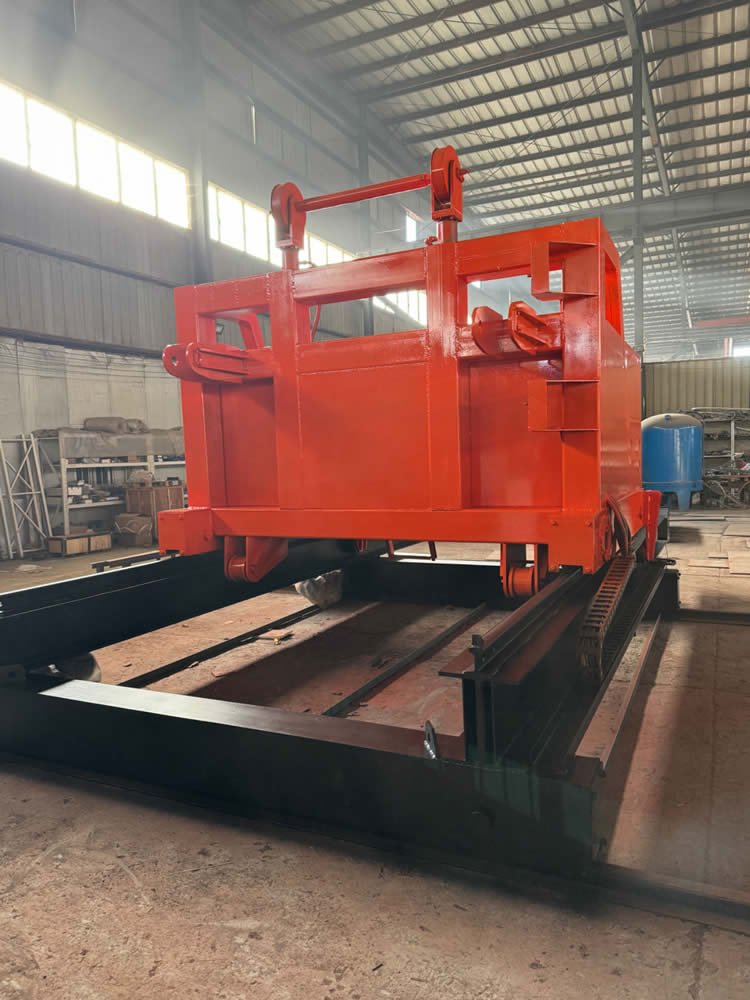4、回火裝爐:按動(dòng)入爐按鈕——中轉(zhuǎn)車右移(或左移)到回火爐爐口——爐門開啟——中轉(zhuǎn)車把工件送入回火爐膛——中轉(zhuǎn)車自動(dòng)退出——爐門關(guān)閉——裝爐工作完成。